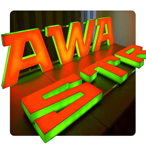 Вывеска AWA STR с полной подсветкой