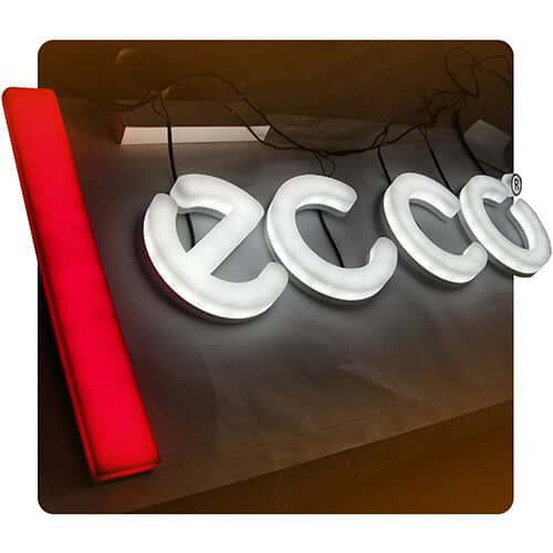 Вывеска ECCO с полной подсветкой